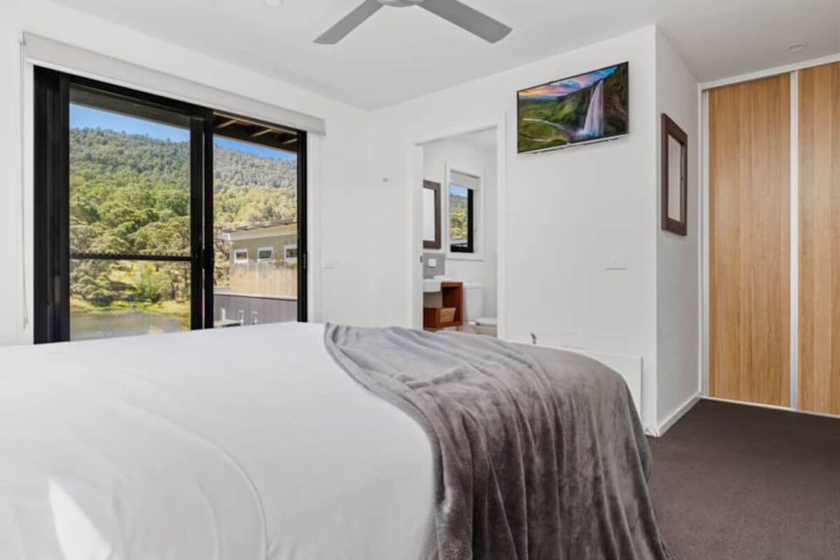 Retreat to the luxurious main bedroom, where a plush king-sized bed promises a restful night’s sleep. The ensuite bathroom is pure indulgence, with a deep bathtub and radiant panel heating to keep you warm on cool mountain evenings. The secondary bedroom is equally inviting, featuring two comfortable single beds, a private ensuite, and panel heating for added comfort.