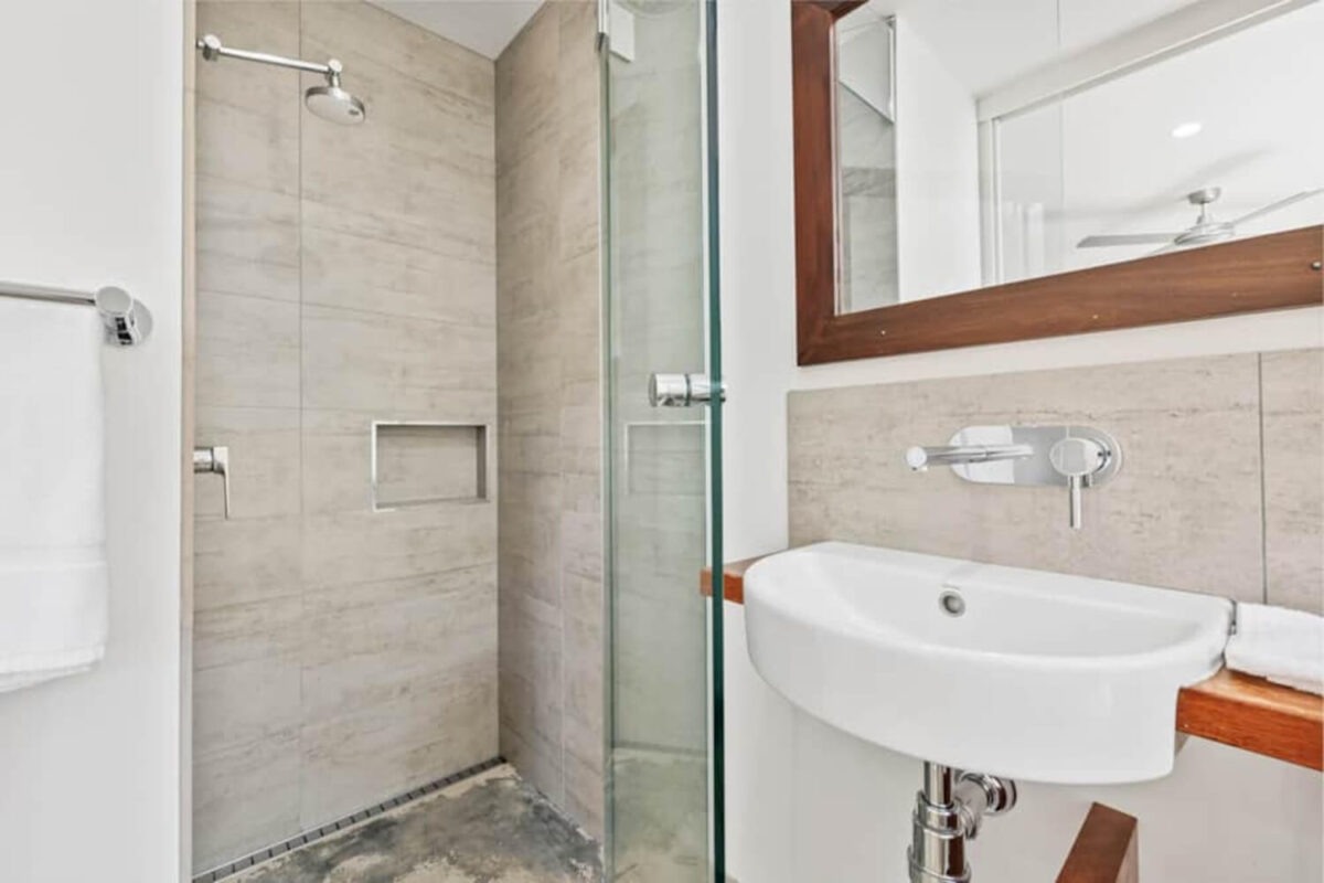 The kitchen is a chef’s dream, featuring an island bench, gas cooktop, oven, refrigerator, microwave, and all the essentials so you can easily prepare a gourmet meal or a simple snack. Enjoy your culinary creations in the bright dining space or take them outside to the balcony for an al fresco experience.
