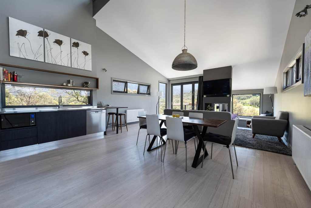 Set across two levels, with the living spaces upstairs and bedrooms downstairs, the property offers great flexibility for families and couples alike. La Casita has stunning views across the lake and onto Crackenback Range, as well as views both North and South of the Main Range Perched on a ridge above the Lake, you enter the second floor through a heated mudroom with bench and generous hanging space.