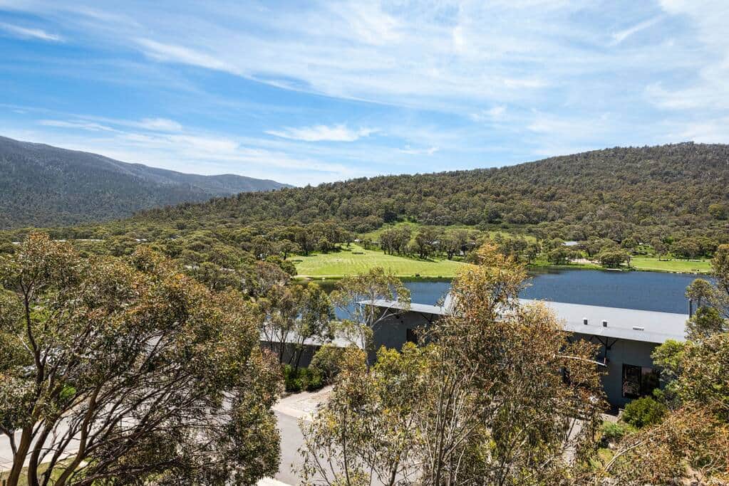 There’s an elegant, comfortable lounge area with smart TV and fireplace, and a separate sunken sunroom with daybed and picture windows that frame superb views of the lake and Main Range. The north-facing balcony receives light all afternoon and is the perfect place to take in the lake views and watch the sun set over the mountains.