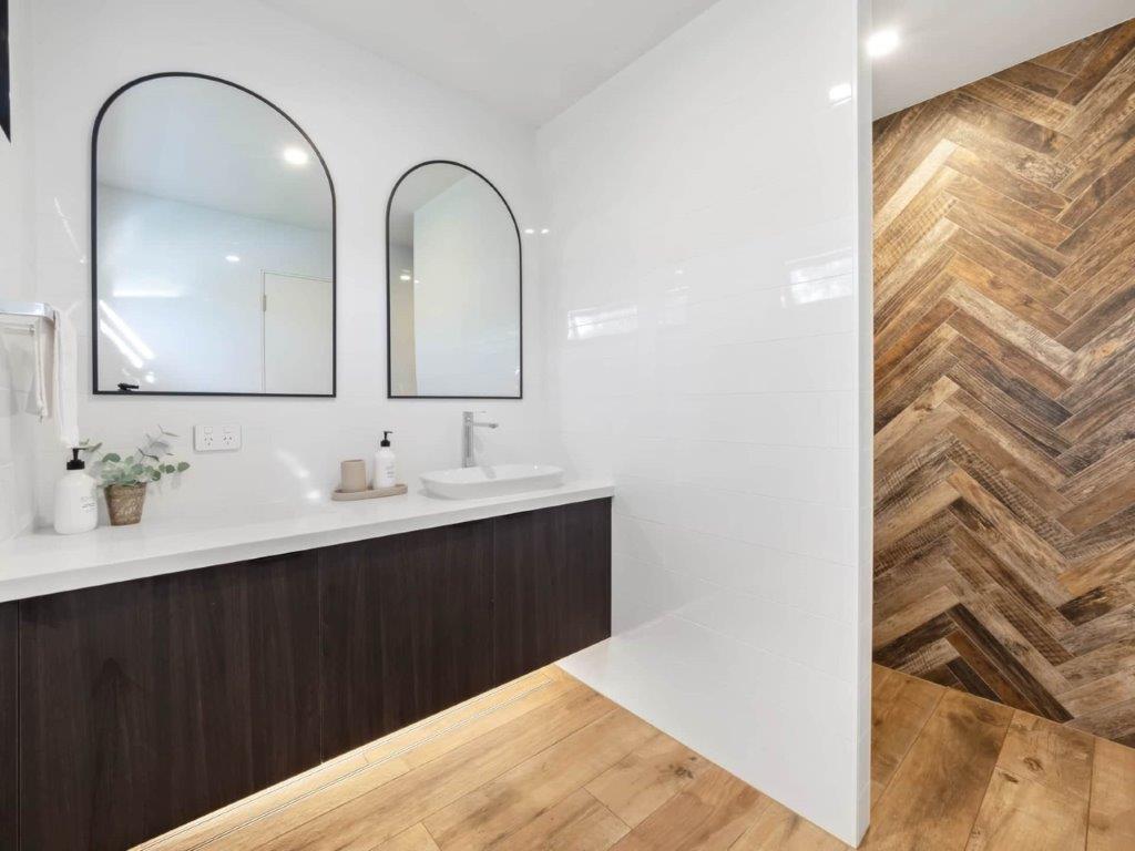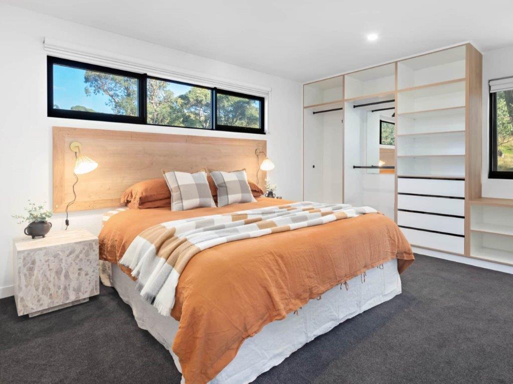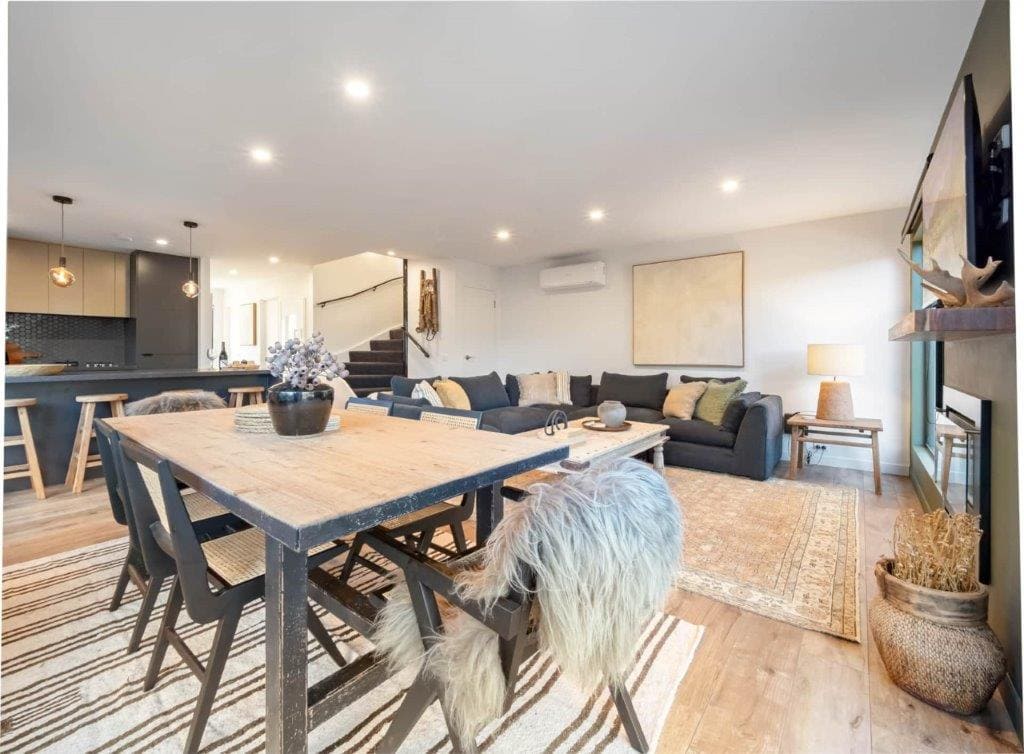 Head upstairs and there’s two private bedrooms, each with king-sized beds and ample storage. The master bedroom has a deluxe ensuite with twin showerheads, heated towel rails and flooring, and high-quality fixtures. Wake up every day with greenery outside your windows. The second bedroom is huge and has windows on three sides, including two large north-facing windows to bring the winter sun in. Heating in both bedrooms ensures a comfortable rest.