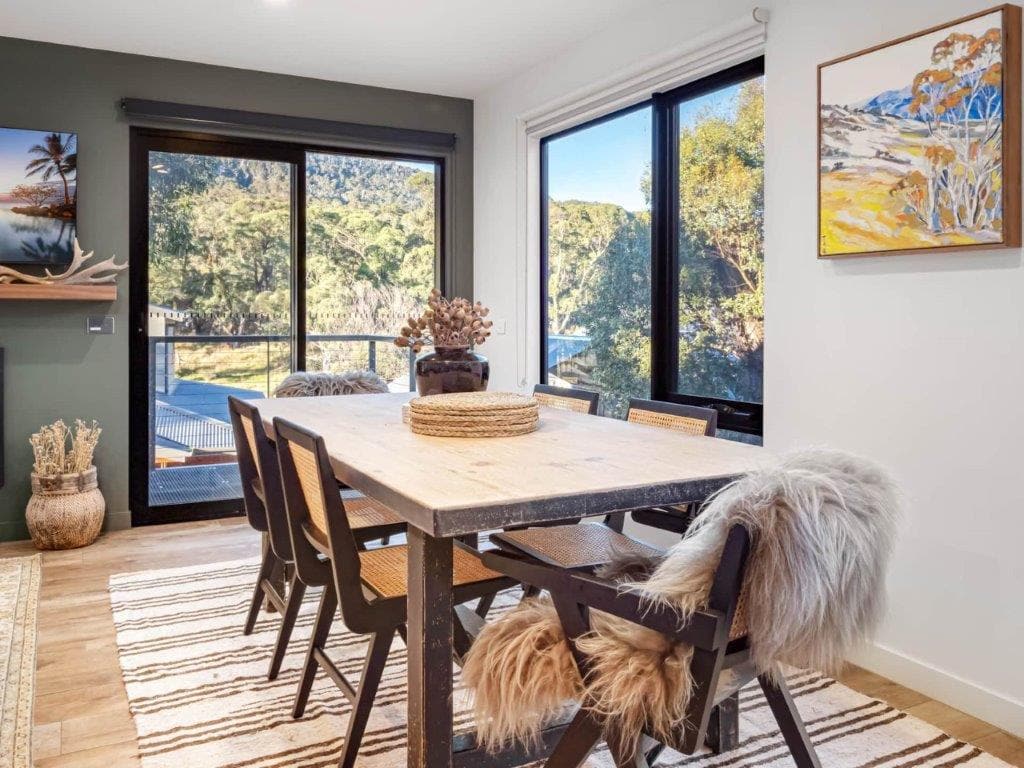 Rider’s Rest is a spacious two-bedroom property situated in the private lakeside chalets section of the resort. The property takes in perfect views of the Crackenback range and out on to a feeder pond for the main lake.
