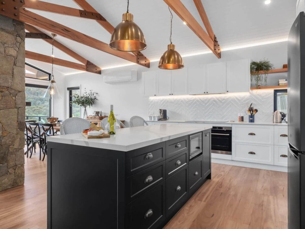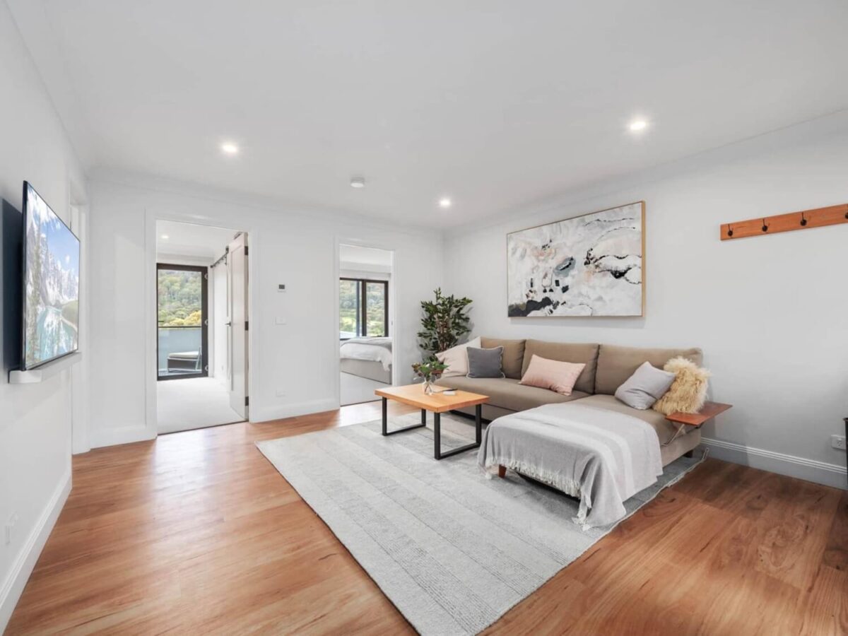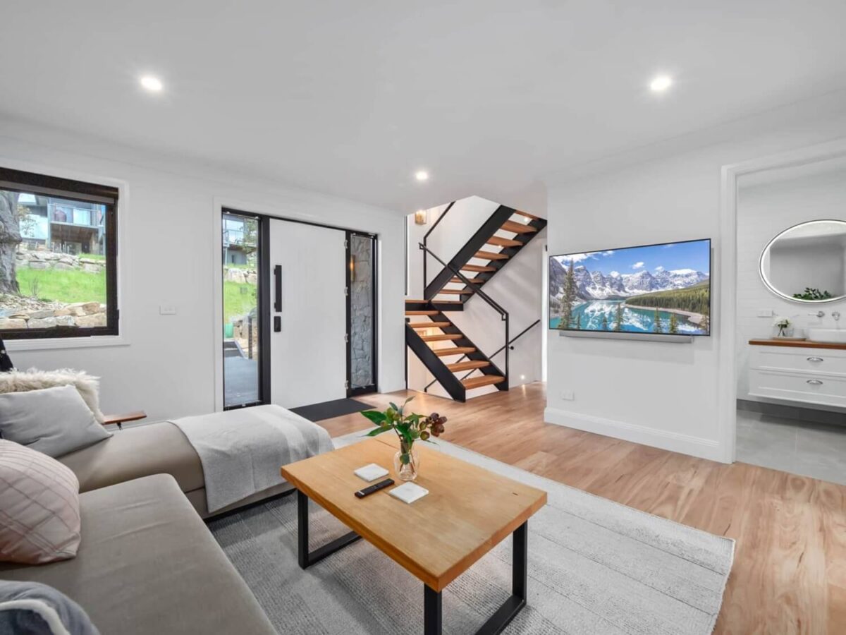Rocky Descent is a high-end modern farmhouse chalet that redefines luxury in the heart of Crackenback. This designer two-bedroom retreat sprawls gracefully over three levels, ensuring an experience of unparalleled comfort and elegance.