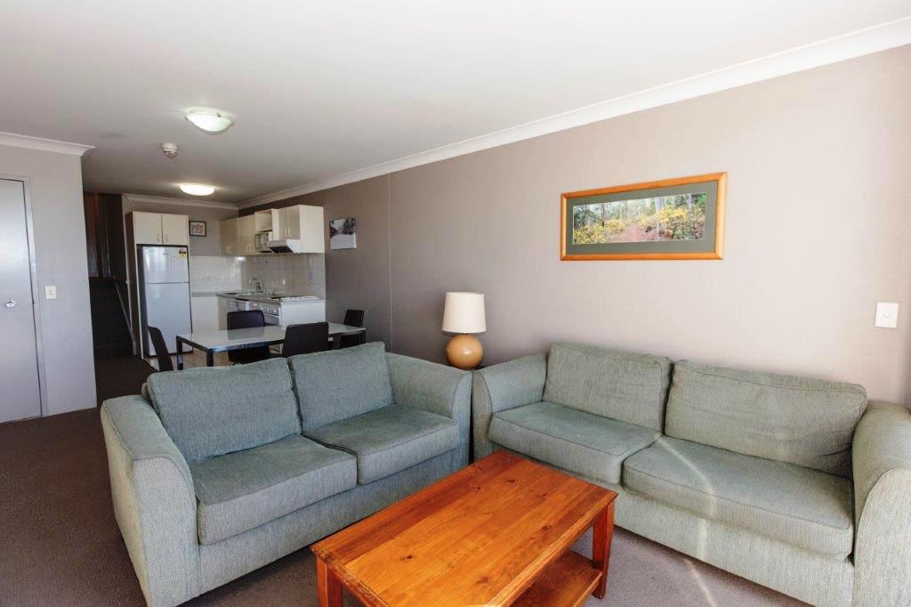 Lovely top floor two bedroom apartment at Rydges Horizons with two balconies on the lake. The apartment has a full kitchen with dishwasher, air-conditioning, electric heating and open living on the entrance floor. On the second floor you will find the large main bedroom with ensuite and corner bath and private balcony. In between, on the split level you will find the second bedroom with two single beds (which can be made up into a king by request at time of booking) and two trundle beds and the main bathroom with laundry facilities.