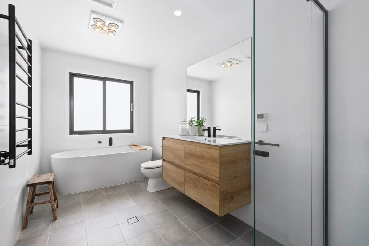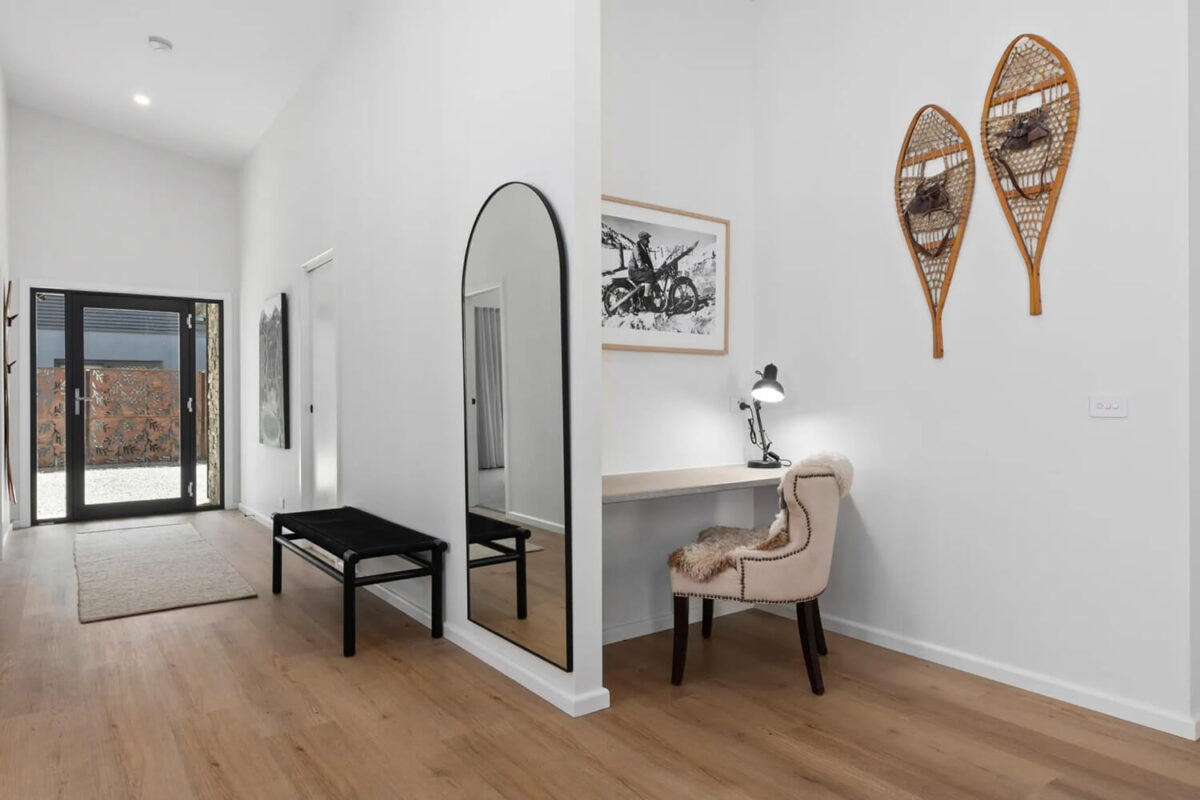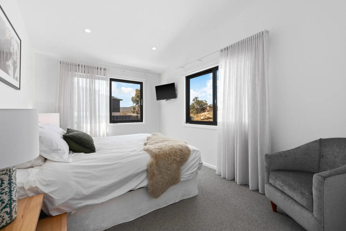 All bedrooms are generous in size, the main bedroom has a king bed, walk in robe and ensuite with heated towel rail, bedroom two with double bed and set of bunks and bedroom three with a king bed sleeping a total of eight guests. The main bathroom has a separate shower, large bath tub to relax in and heated towel rail.