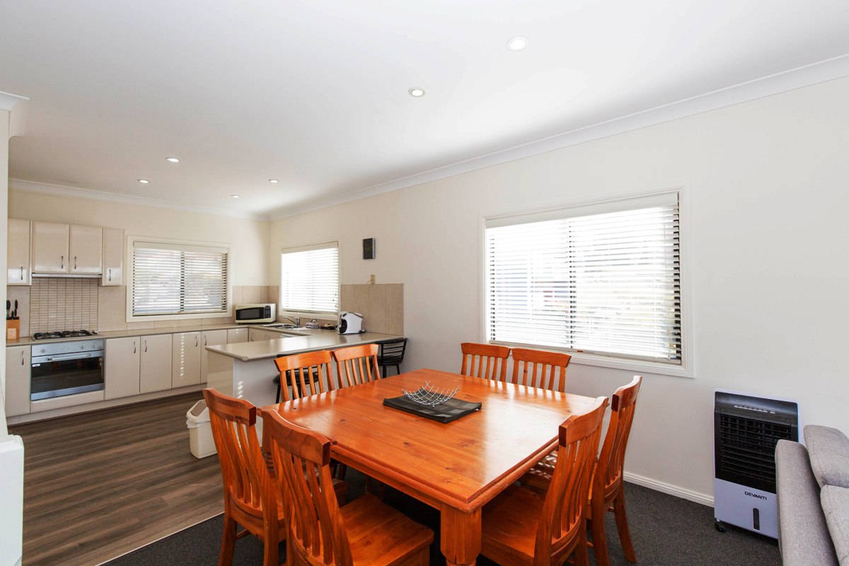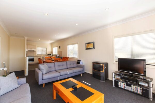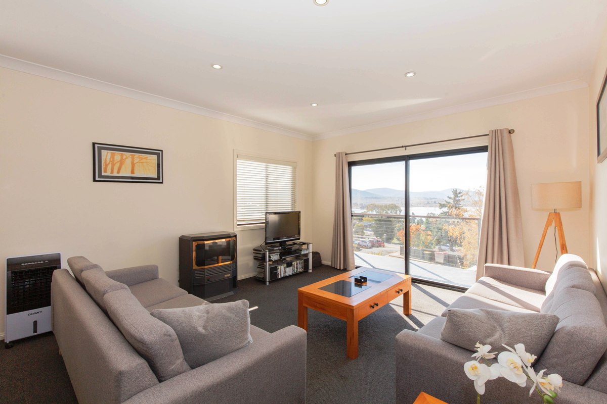 Upstairs, you will find the open plan kitchen, living and loungeroom that leads onto the balcony with lake views, two bedrooms consisting of one queen and two singles and a bathroom. Downstairs the two bedrooms have one queen plus two sets of bunks. The property also offers free Wi-Fi, a drying room, underfloor heating in both bathrooms, single lock up garage and two off street parking spots.