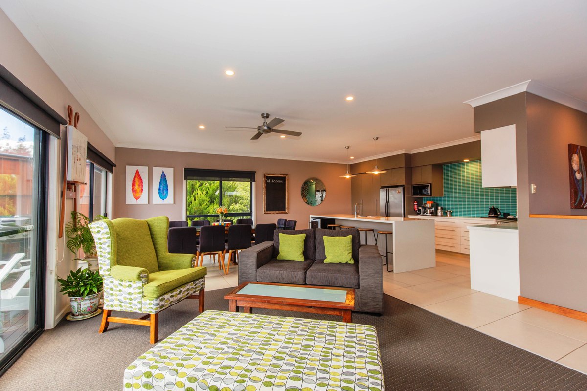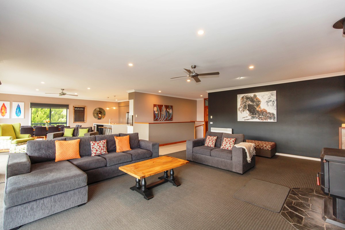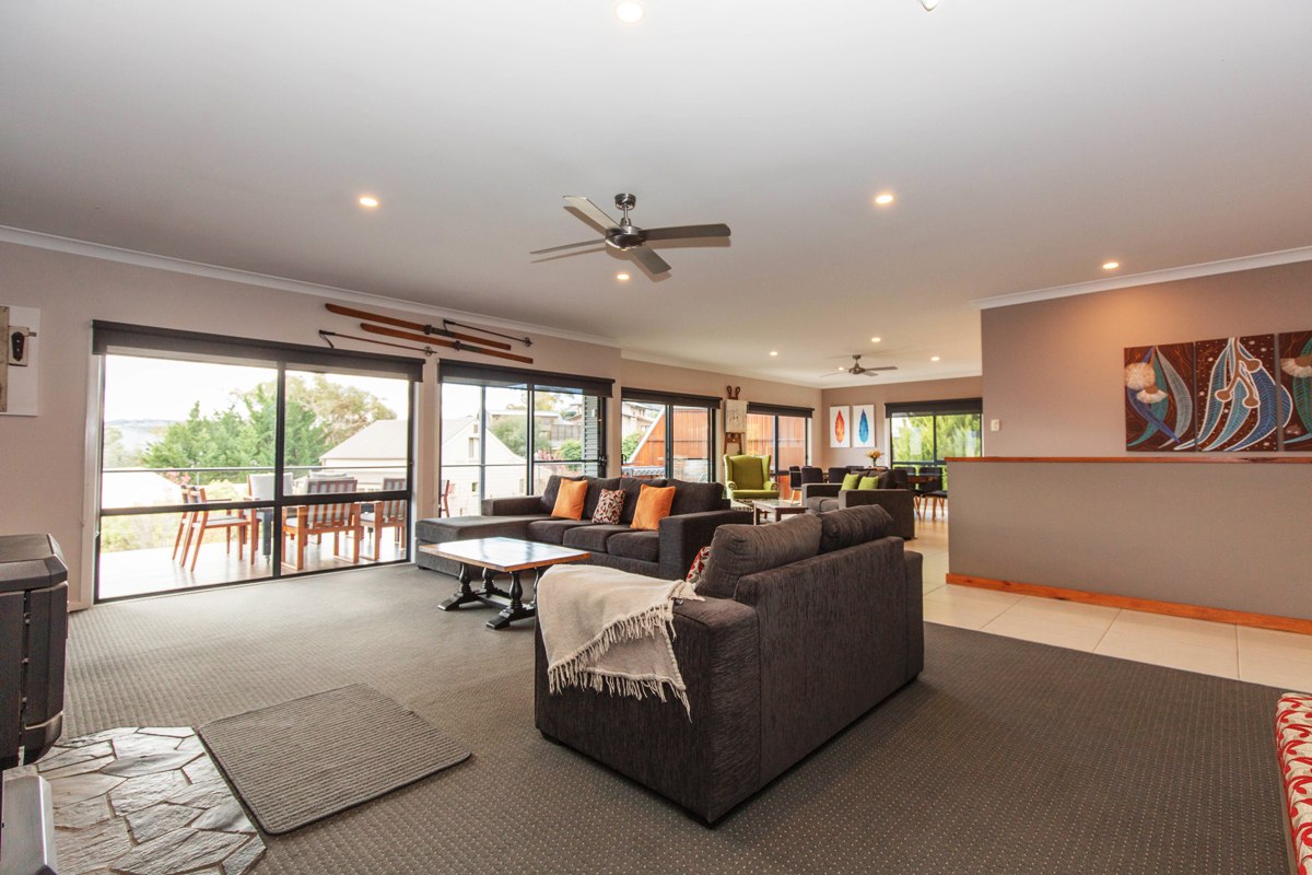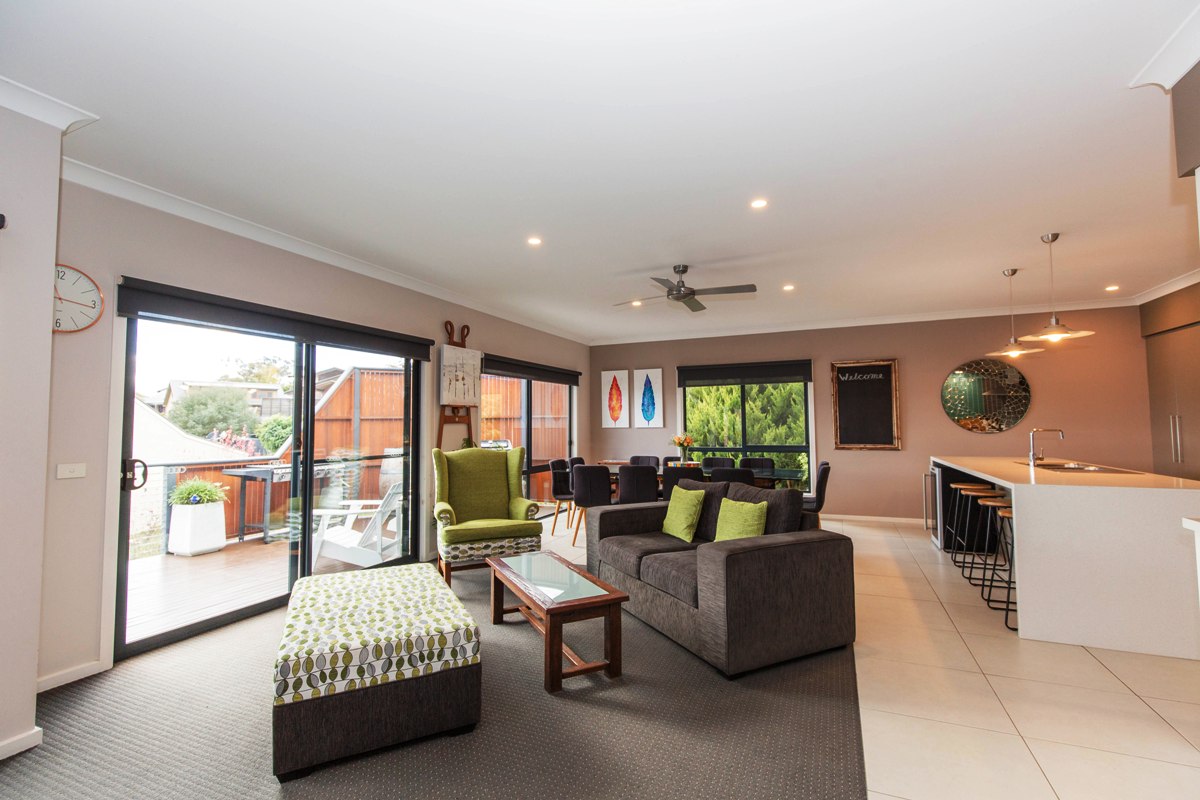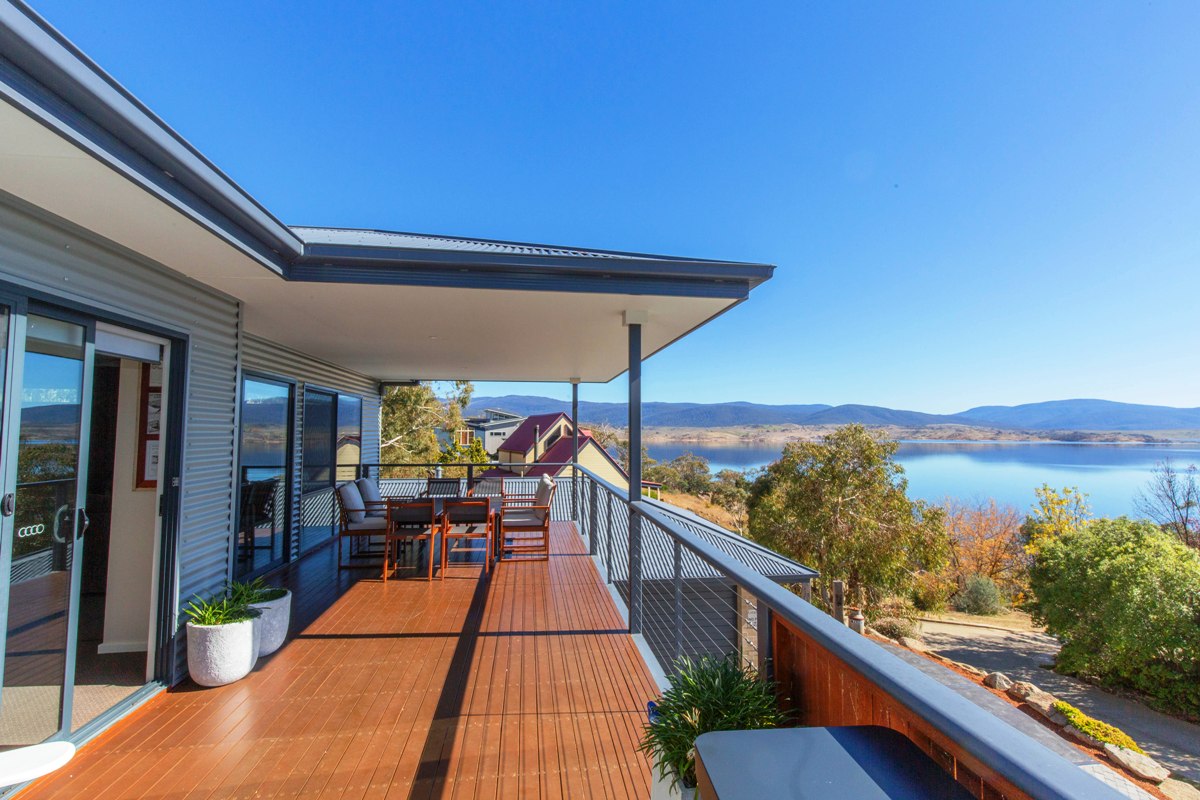 Grandview House is a spacious, modern family home spread over two levels. Two generous living areas as well as a sitting area off the open plan kitchen/dining area. Breathtaking views of Lake Jindabyne. Relax by the combustion fire in the main living room while the kids hang out in the second living room with reverse cycle air conditioning. This house is kid-friendly with a gate to block off the top of the stairs and a high chair for your convenience. The master bedroom has a large ensuite, the main bathroom is enormous and there is an extra separate toilet.