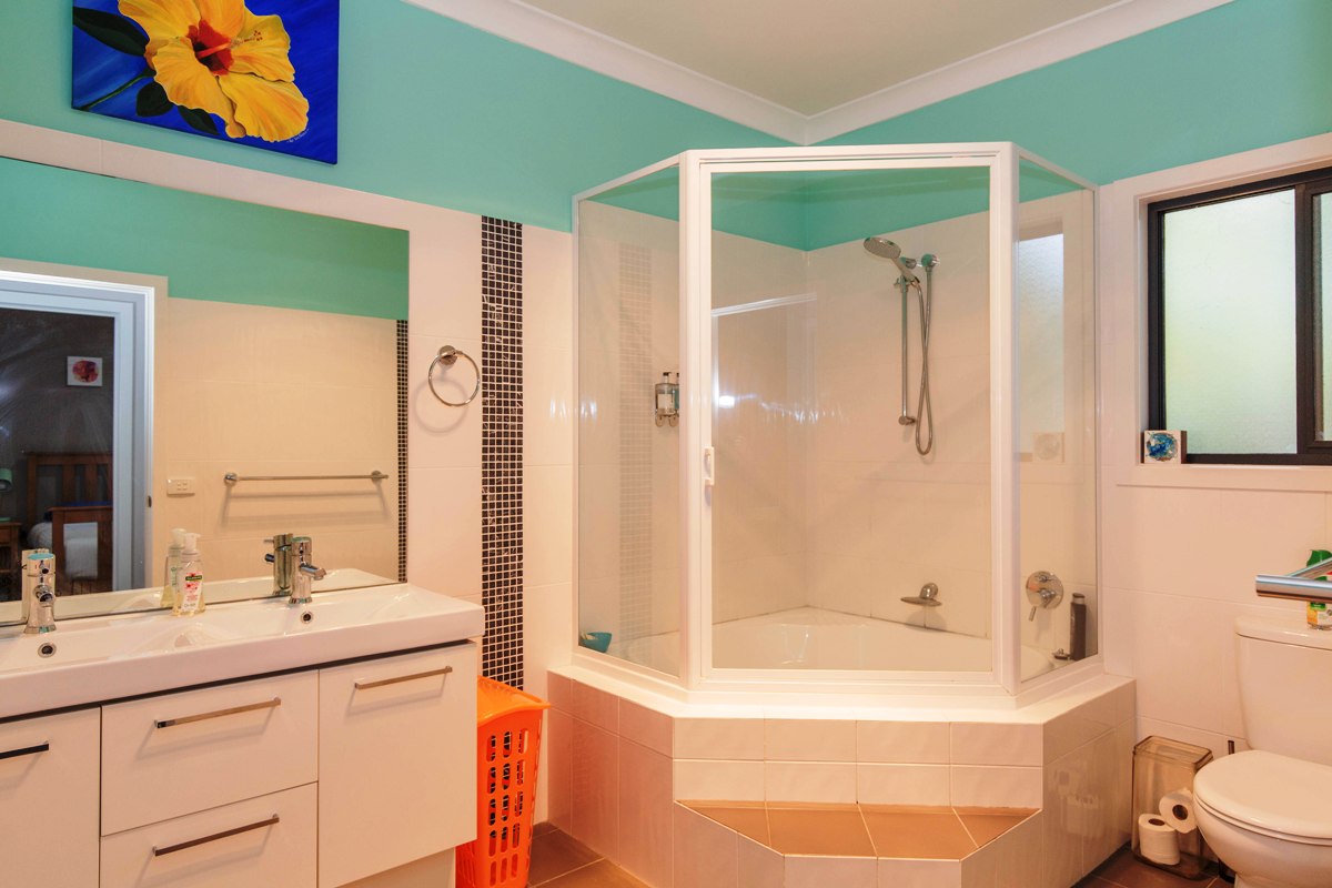- Two bathrooms, one with corner spa