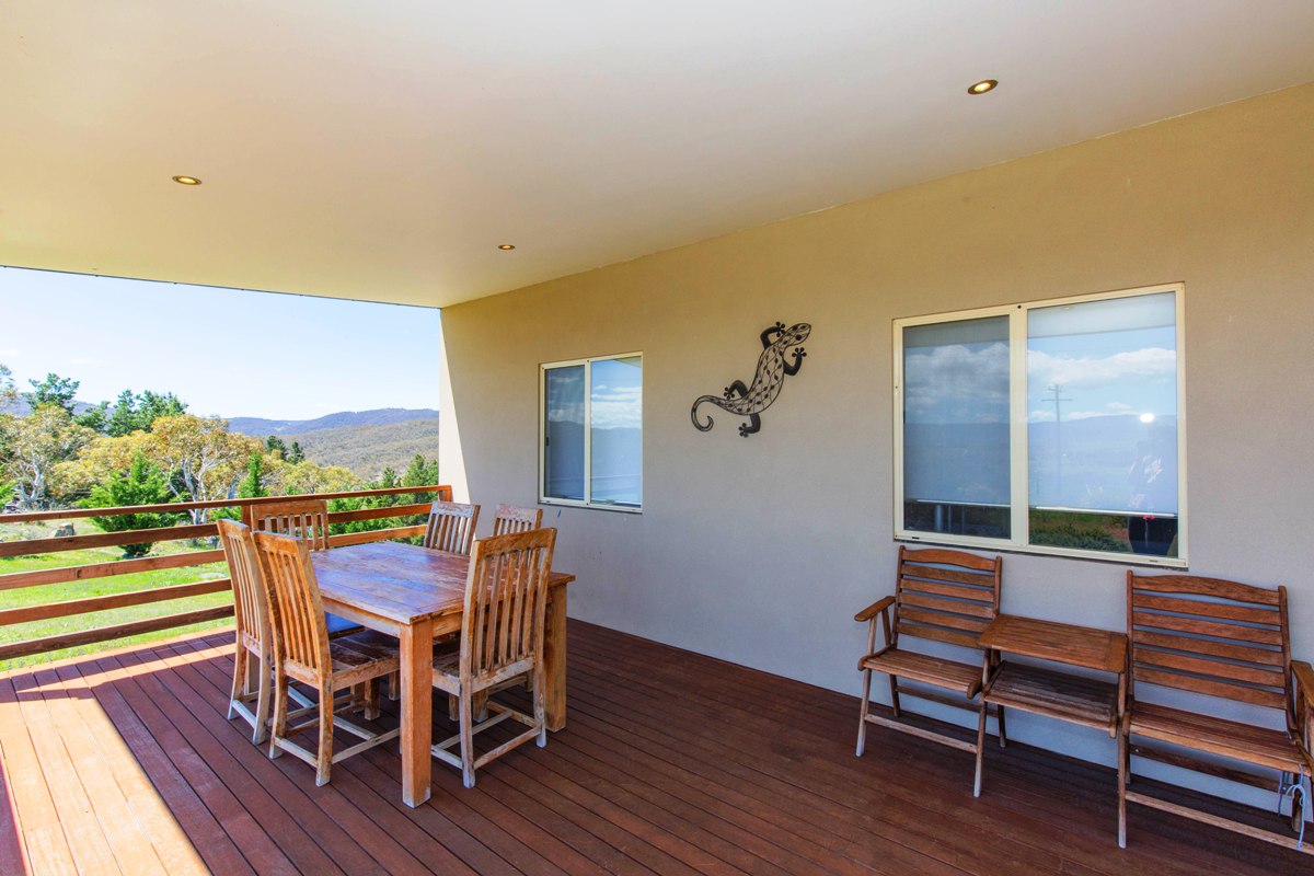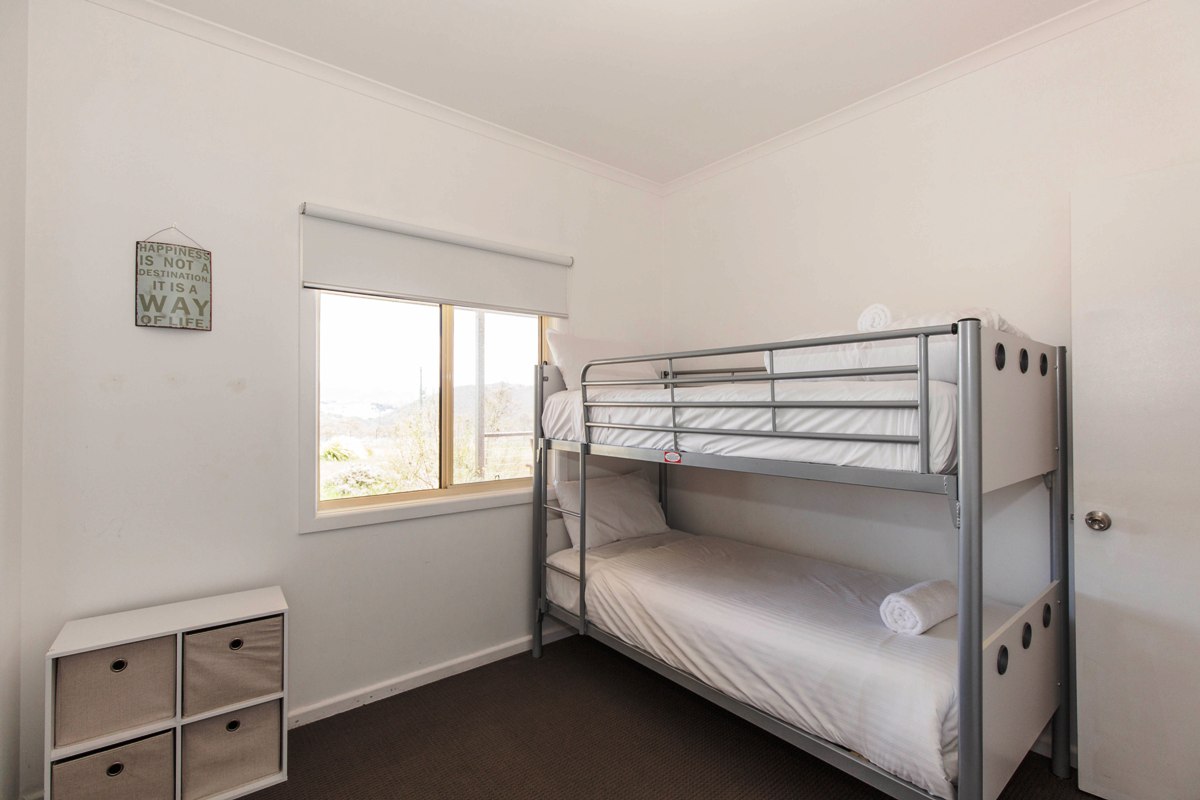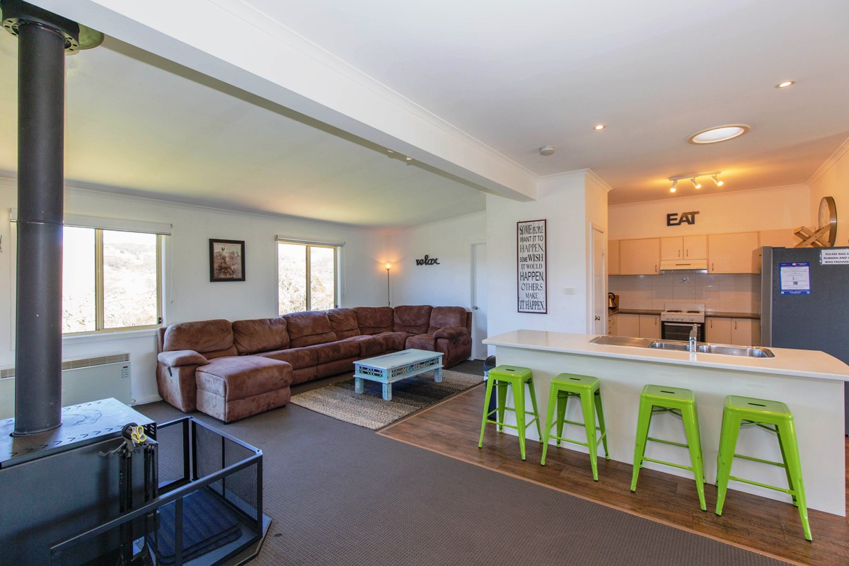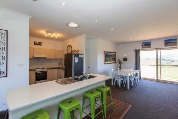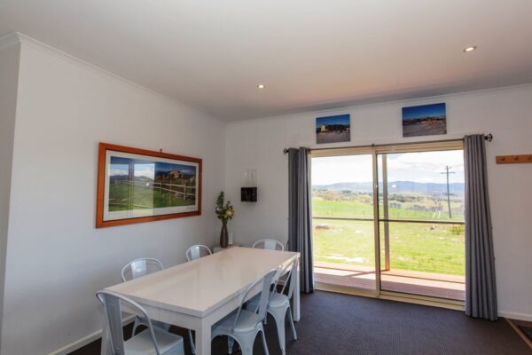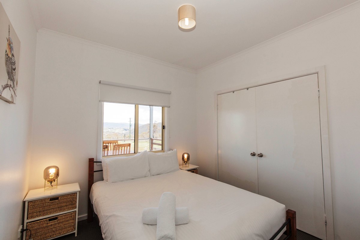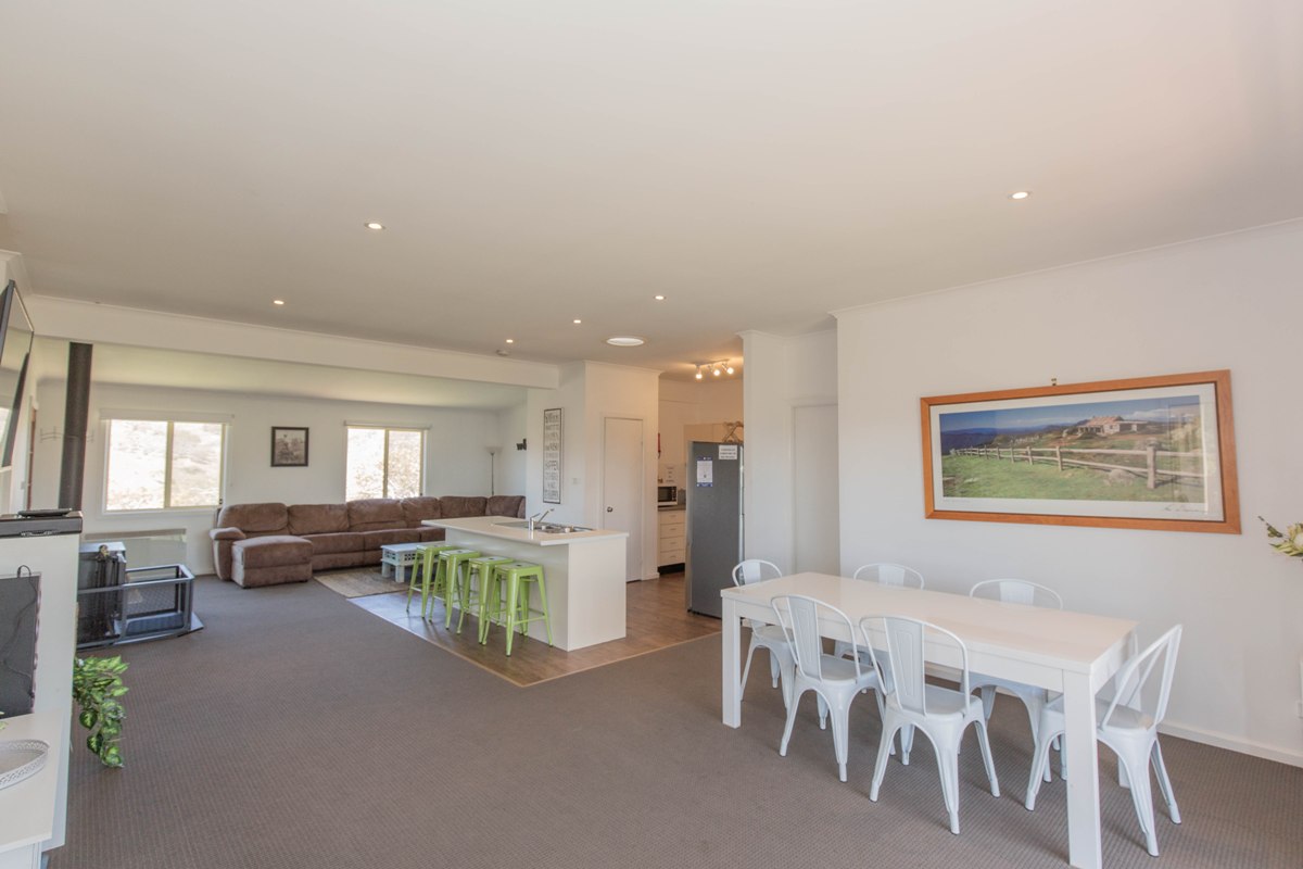 Frost Creek Lodge is a beautifully situated, modern country-style home located on a private crest of 5 acres only a 15 -20 minute drive from the centre of Jindabyne. Perfect for families, this property sleeps up to 10 comfortably in the 5 bedrooms and 2 bathrooms. Relax and enjoy the amazing view of the Snowy Mountains while enjoying the isolated setting, open spaces, and wildlife on the property. One room features a King Bed with wall-mounted TV, two rooms feature queen beds, with the other two featuring a set of bunks each. The kitchen is well equipped and there’s a BBQ and outdoor setting for those warm summer nights. There are 2 TV’s, one with DVD player and an expansive yard for the kids to play in. Keep warm in winter next to the wood combustion fire (wood not supplied) while enjoying the beautiful sunsets over the tranquil Snowies. Property is located 1.5km off Snowy River Way on a dirt road.