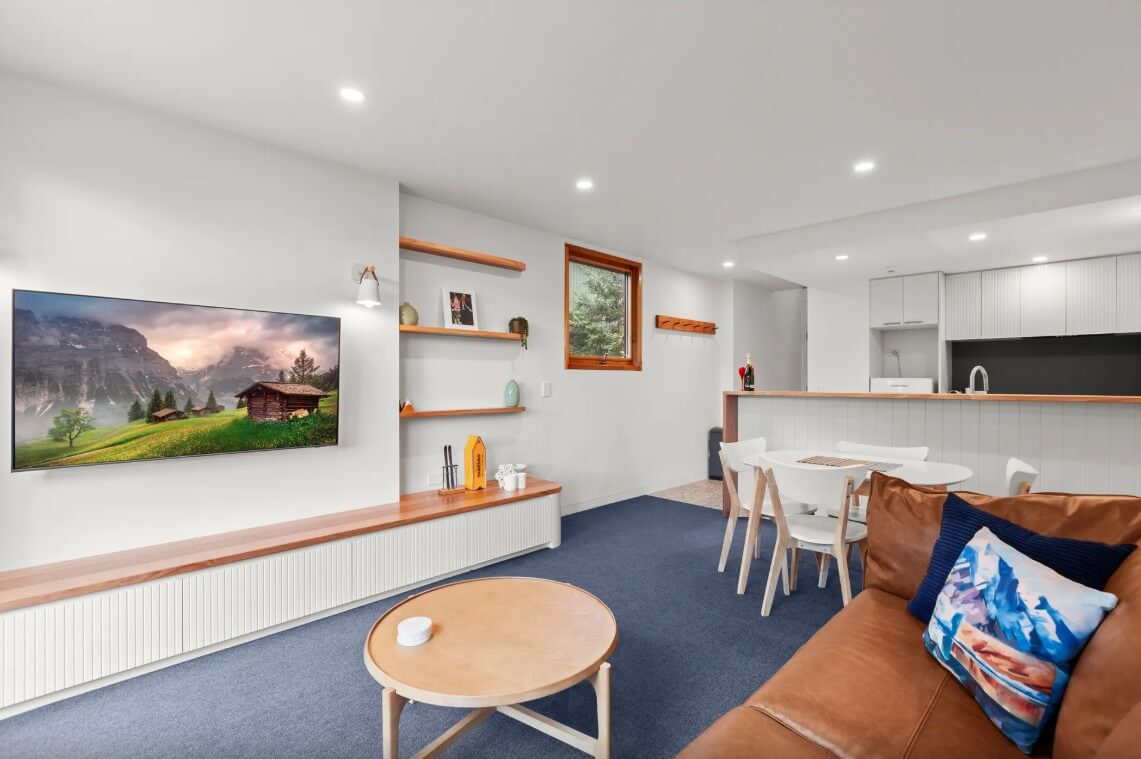Welcome to Knickerbocker B, your spacious two-level sanctuary nestled in the prestigious Crackenback Ridge area of Thredbo. Step into the warmth and comfort of this modern apartment, where a cozy gas fireplace awaits you in the living room on the ground floor.