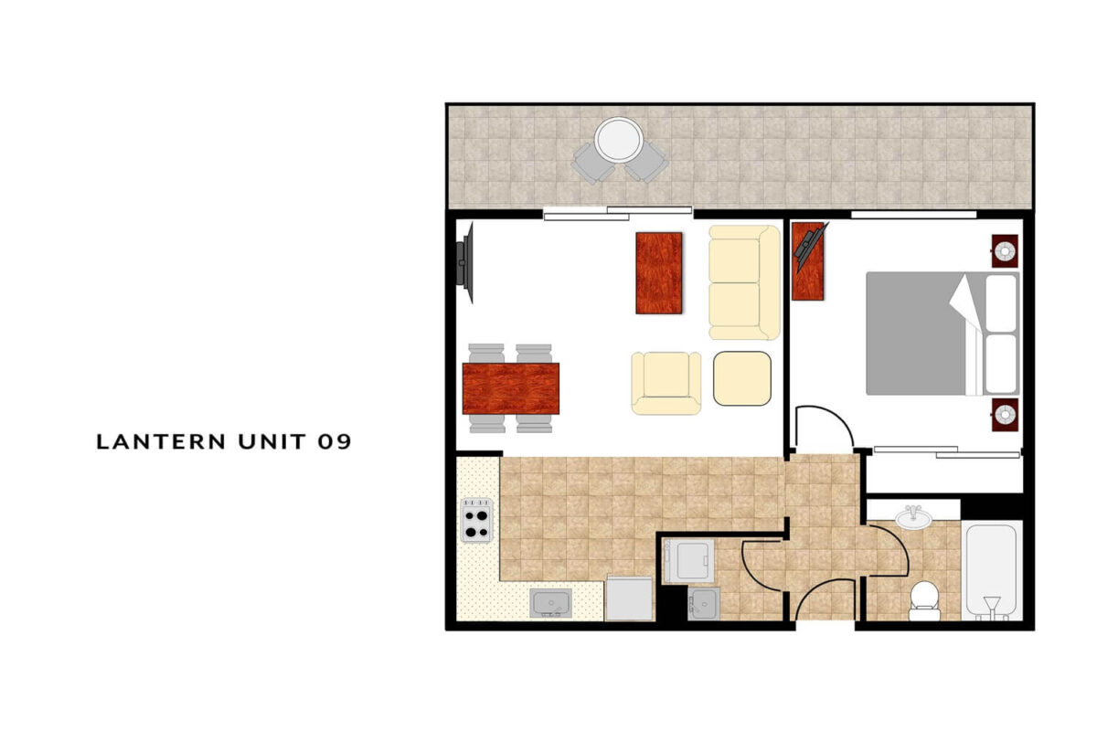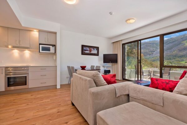 Lantern 9 is a nicely appointed one bedroom apartment with balcony, located in the Lantern Apartments complex. Features include free wireless internet, Foxtel TV, great mountain views from the terrace balcony, free shuttle bus located right out the front, and laundry facilities. Lantern 9 is a great option for small families and groups, offering affordable accommodation with great facilities.